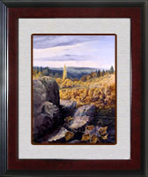 Hand Crafted Wood Frame by Artist The frames are made of non-endangered hardwood; milled, assembled, finished & matted by the Artist in a small shop in Placerville, California. Planed boards are milled, mitered, splined with biscuits & glued. The frame is sanded, stained with red mahogany & two coats of sanding sealer are applied. Once again, the frame is sanded, followed by lacquer color coats; black on the edges; dark walnut on the face of the frame. It is finished with two coats of clear lacquer. The frame is then hand-rubbed with extra fine steel wool to achieve a satin finish. The prints are mounted behind clear glass framed by double acid-free mats. Acid free foam core & a dust cover complete the assembly. The back has a pocket applied to house the Certificate of Authenticity which comes with each print. A wire for hanging the frame is attached. Each frame is unique & because these frames are hand crafted from natural wood & are not a man made laminated veneer finish, there will be slight imperfections adding character to the whole piece. If imperfections will disturb you, perhaps you would prefer to purchase a print & have your local frame shop take it from there. In either case it is my sincerest hope that you will be satisfied.