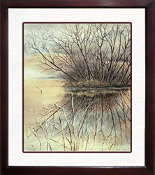 Hand Crafted Wood Frame by Artist The frames are made of non-endangered hardwood; milled, assembled, finished & matted by the Artist in a small shop in Placerville, California. Planed boards are milled, mitered, splined with biscuits & glued. The frame is sanded, stained with red mahogany & two coats of sanding sealer are applied. Once again, the frame is sanded, followed by lacquer color coats; black on the edges; dark walnut on the face of the frame. It is finished with two coats of clear lacquer. The frame is then hand-rubbed with extra fine steel wool to achieve a satin finish. The prints are mounted behind clear glass framed by double acid-free mats. Acid free foam core & a dust cover complete the assembly. The back has a pocket applied to house the Certificate of Authenticity which comes with each print. A wire for hanging the frame is attached. Each frame is unique & because these frames are hand crafted from natural wood & are not a man made laminated veneer finish, there will be slight imperfections adding character to the whole piece. If imperfections will disturb you, perhaps you would prefer to purchase a print & have your local frame shop take it from there. In either case it is my sincerest hope that you will be satisfied.