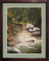 Hand Crafted Wood Frame by Artist The frames are made of non-endangered hardwood; milled, assembled, finished & matted by the Artist in a small shop in Placerville, California. Planed