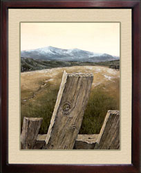 The frames are made of non-endangered hardwood; milled, assembled, finished & matted by the Artist in a small shop in Placerville, California. Planed